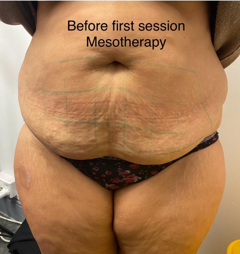 Mesotherapy fat dissolving is a non-surgical treatment designed to target stubborn, localised fat that may be resistant to diet and exercise. Treatment suitable for areas such as the chin, abdomen, thighs, arms, and flanks. Consultation required prior to treatment.